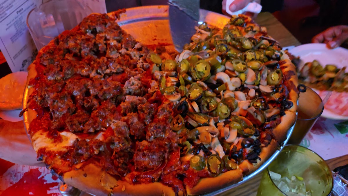 The menu focuses heavily on pizza, with an emphasis on generous toppings and bold flavors. The Chicago Style Pepperoni Jalapeño Pineapple Pizza and Rosario’s Special — loaded with pepperoni, sausage, black olives, green peppers, mushrooms, and optional anchovies — are popular picks that show the kitchen isn’t afraid to mix traditional with unexpected ingredients. Beyond pizza, their pasta and ravioli options come with soup or salad and garlic bread, making for satisfying, well-rounded plates.